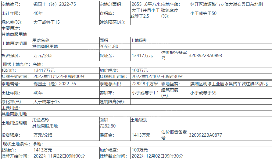 无锡四批次挂牌出让10宗地!总起价61.5亿元!